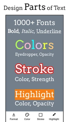 Fotoğraflarınıza kolayca metin ekleyin ve düzenleyin. Fotoğrafa Metin ekle, 1000'den fazla yazı tipi, renk, gölge, doku ve eğimli metin gibi zengin özelliklerle görsel hikayelerinizi güçlendirir. Resimlerinizi profesyonelce kişiselleştirin ve dilediğiniz gibi kaydedin.