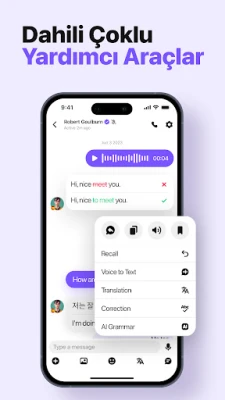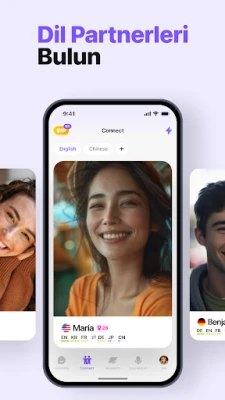 HelloTalk, öğrenme sürecinizi kolaylaştıran güçlü araçlarla donatılmıştır. Anlık çeviri ve altyazı özellikleri sayesinde, iletişim kurarken hiçbir engelle karşılaşmazsınız. Canlı yayınlar ve özel Sesli Konuşma Odaları, küresel bir topluluğun parçası olmanızı sağlar. Bu interaktif ortamlarda, çeşitli konularda tartışmalara katılarak, hem dil bilginizi pekiştirir hem de kültürel derinlik kazanırsınız. Sizin dil yeterliliğinize ve ilgi alanlarınıza uygun kişileri bulmanızı sağlayan akıllı eşleştirme sistemi, ideal öğrenme partnerinizi keşfetmenize yardımcı olur.