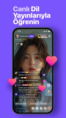 İster sınavlara hazırlanan bir öğrenci olun (CET, GRE, TOEFL, IELTS gibi), ister yurt dışında yaşama hayalleri kuran biri, isterse kariyerinde yeni ufuklar arayan bir profesyonel; HelloTalk size özel çözümler sunar. Geleneksel ezber yöntemlerinin aksine, anadili konuşanlarla yapılan gerçek sohbetler, kelime dağarcığınızı ve ifade yeteneğinizi daha etkili bir şekilde geliştirir. Dünya genelinden özenle seçilmiş dil uzmanlarının sunduğu canlı yayınlar sayesinde telaffuzunuzu kusursuzlaştırabilir, konuşma hızınızı ayarlayabilir ve özgüveninizi artırabilirsiniz.