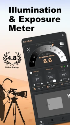 Işık Ölçer - Lux, Pozlama, dahili pozlama hesaplayıcısı ile her çekimde mükemmel pozlama sunar. Profesyonel kalitede doğrulukla fotoğrafçılar, film yapımcıları ve aydınlatma uzmanları tarafından tercih edilir. Diyafram, deklanşör hızı, ISO gibi ayarları kontrol edin ve video çekimleri için deklanşör açısını ayarlayın.